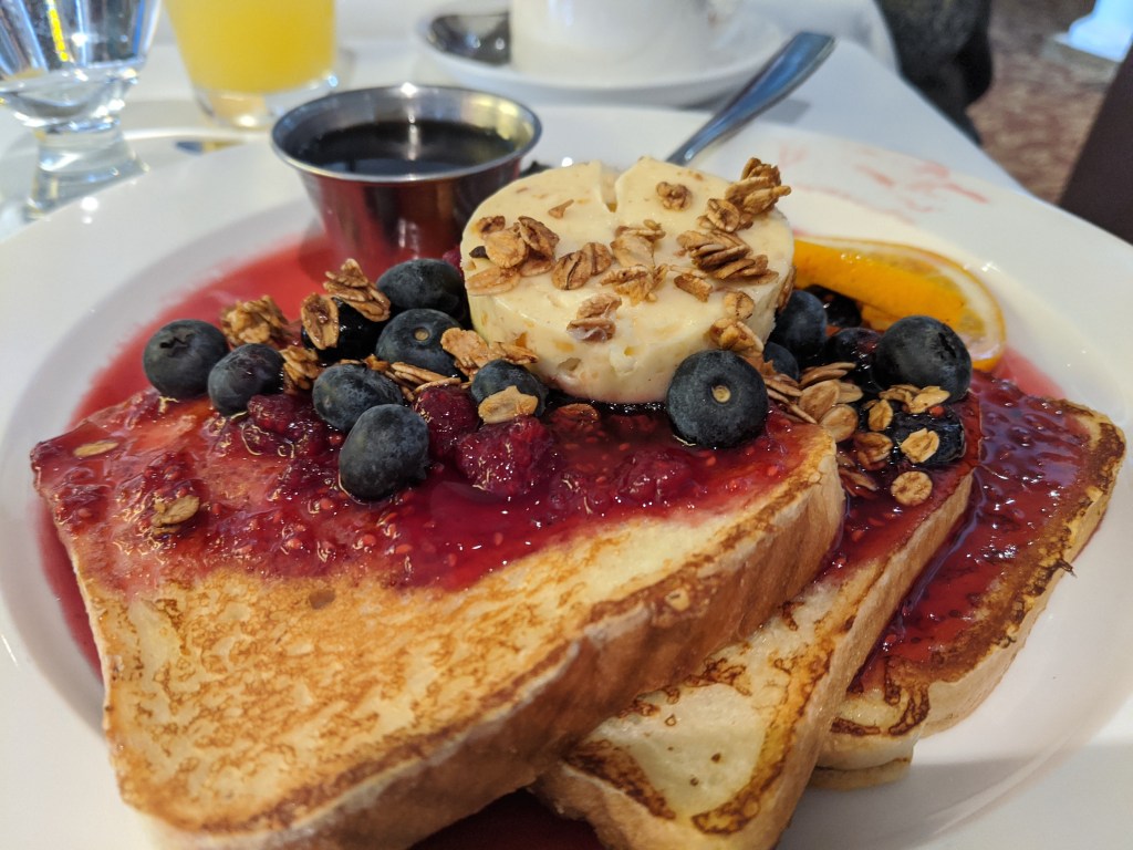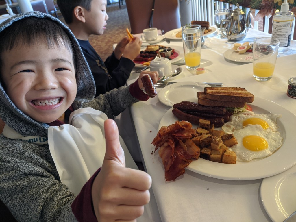 We ate breakfast there on our weekend trip during COVID. Declan ordered french toast, Rowan got the breakfast special with waaaay too much meat. But Rowan ate it all with gusto and was full for a very long time.