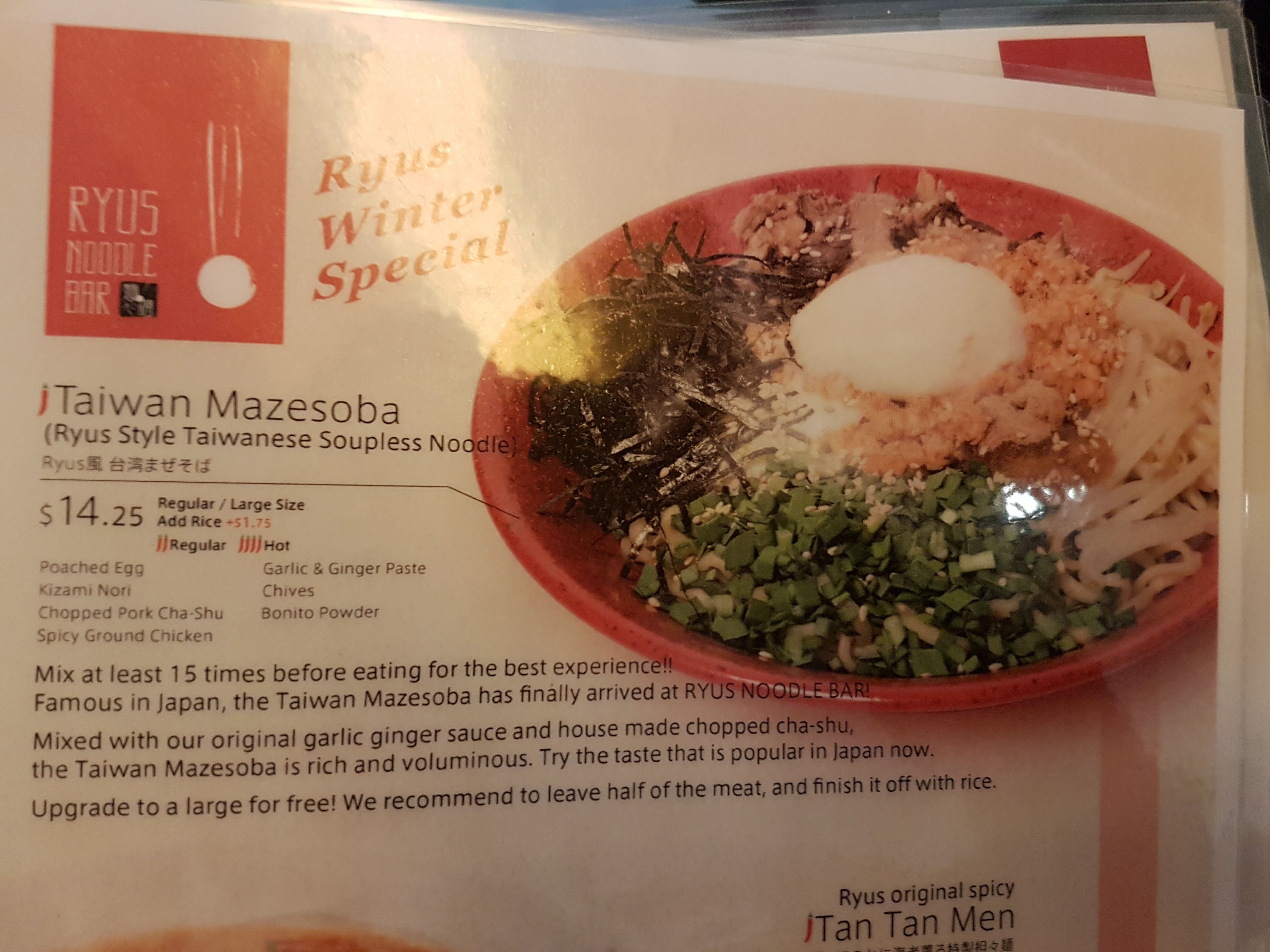 Obviously the food is solid. They have the best thick noodles in the city, in my opinion, with a unique whole grain addition which doesn’t negatively affect flavour at all, but definitely shows the chef is making his own noodles and maybe throwing in a tiny bit more health in there too. The noodles are curly, thick, with a delightful chew. Chef Ryu’s rich shio broth is truly a class of its own. Multi-dimensional with chicken pork and even the tiniest hint of acidity from some lemon, it is the broth that earned him the seat in the museum. We get one of these every time we come. While second to the shio in my opinion, his rich shoyu is still better than most other tonkotsu or tonkotsu-style (because I don’t think his is technically a traditional tonkotsu) broths in the city, I believe. We get this for the kids usually and then steal some of it. The tsukemen is wonderful. The spicy miso is great. The tan tan is good if you are in the mood for that, but I find that this one gets a little homogenous and is so thick to almost become sludgy by the end of the meal, so I don’t get it that often. Their pork chasu is wonderful with marbled flavour, but not excessively fatty, and if you love it you can get it loaded on with their “pork blaster”. The menu is extensive including nice don (rice) sides, but they also make it easy to keep coming back with seasonal specials like a Taiwan Mazesoba or Angus Beef with Uni (sea urchin) which was out of this world. They also have lots of customization options. They have a variety of seasoning oils and toppings that you can add to mix up the usual base flavours (they used to even include one with your bowl). They let you for example pick thick or thin noodles for any broth, which not every place does. But Ryu takes this even further with a very unique offering that really puts them over the top for us as nobody else does this but it is perfect for us.