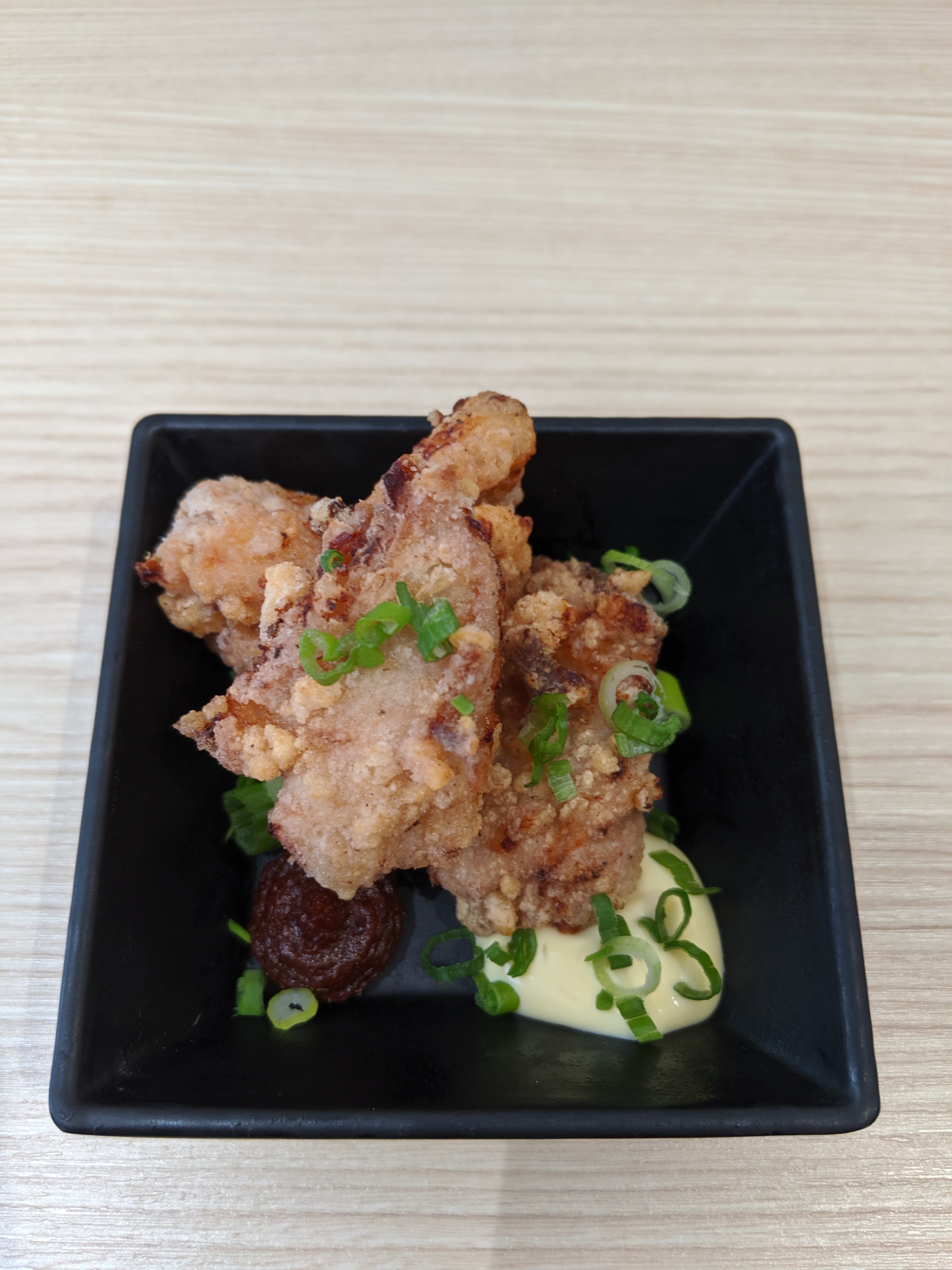 This place is not far from my work so I hit it for lunch. I was actually planning to go to Ikkousha Ramen just a few doors away as I had seen it open recently and the reviews looked good online, but there was too much of a lineup and I’m not one much for lines, especially on a tight lunch break. This was the first time I had tried Hakata style ramen and it was a bit different than what I had tried before, which was an interesting change. I actually think that although the online reviews favour Ikkousha, I enjoyed the ramen at this place better. They totally got me with their $1 3-piece Karage lunch special as well. Yum.