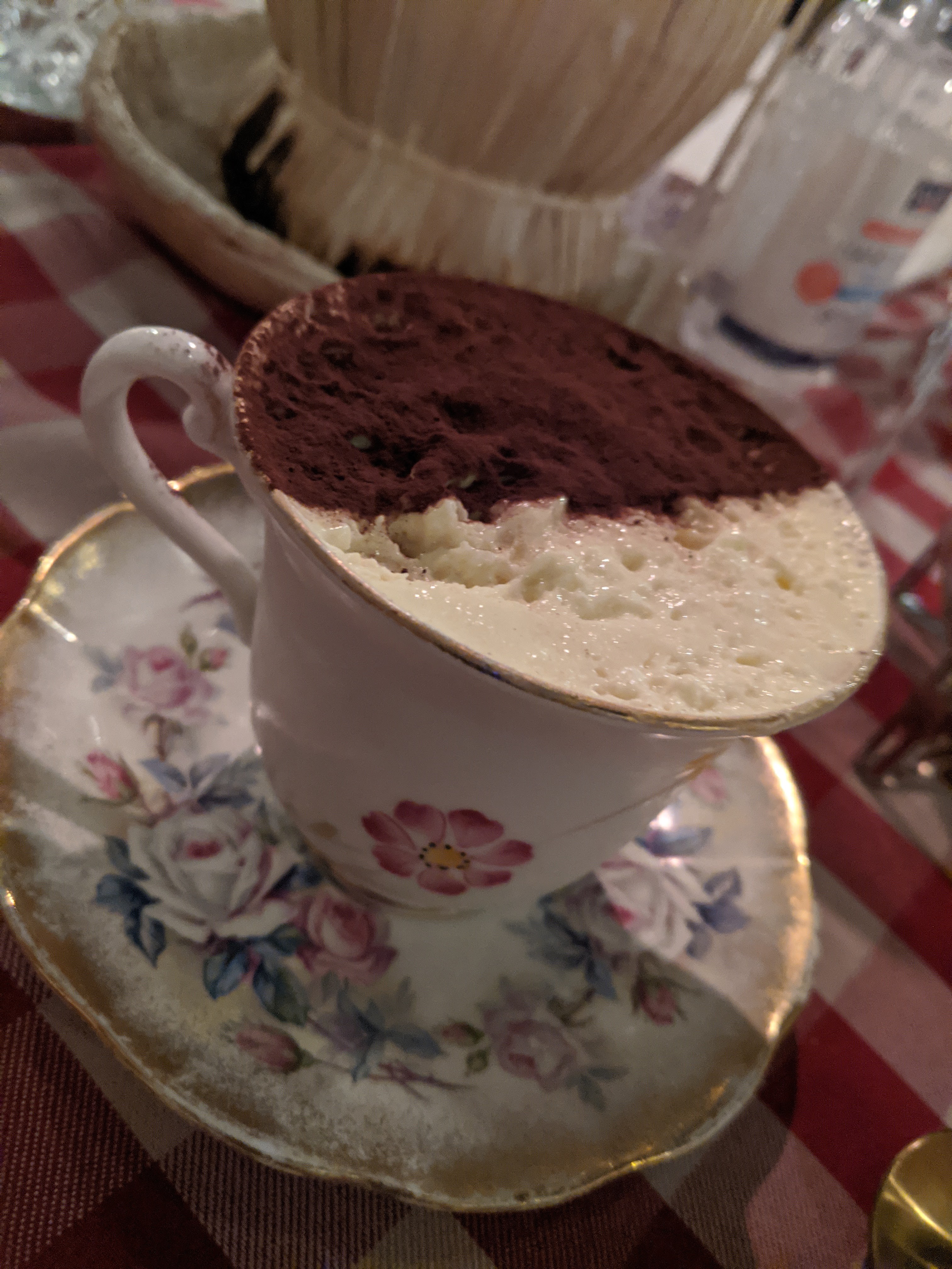 Sylvia apologizes to this waitress for her wrath. The gelato and tiramisu were both very nice. The tiramisu is just how Sylvia likes it – not very sweet at all, with lots of chocolate. In fact, it was bitter enough that Declan rejected it. A first for Declan to reject a dessert!