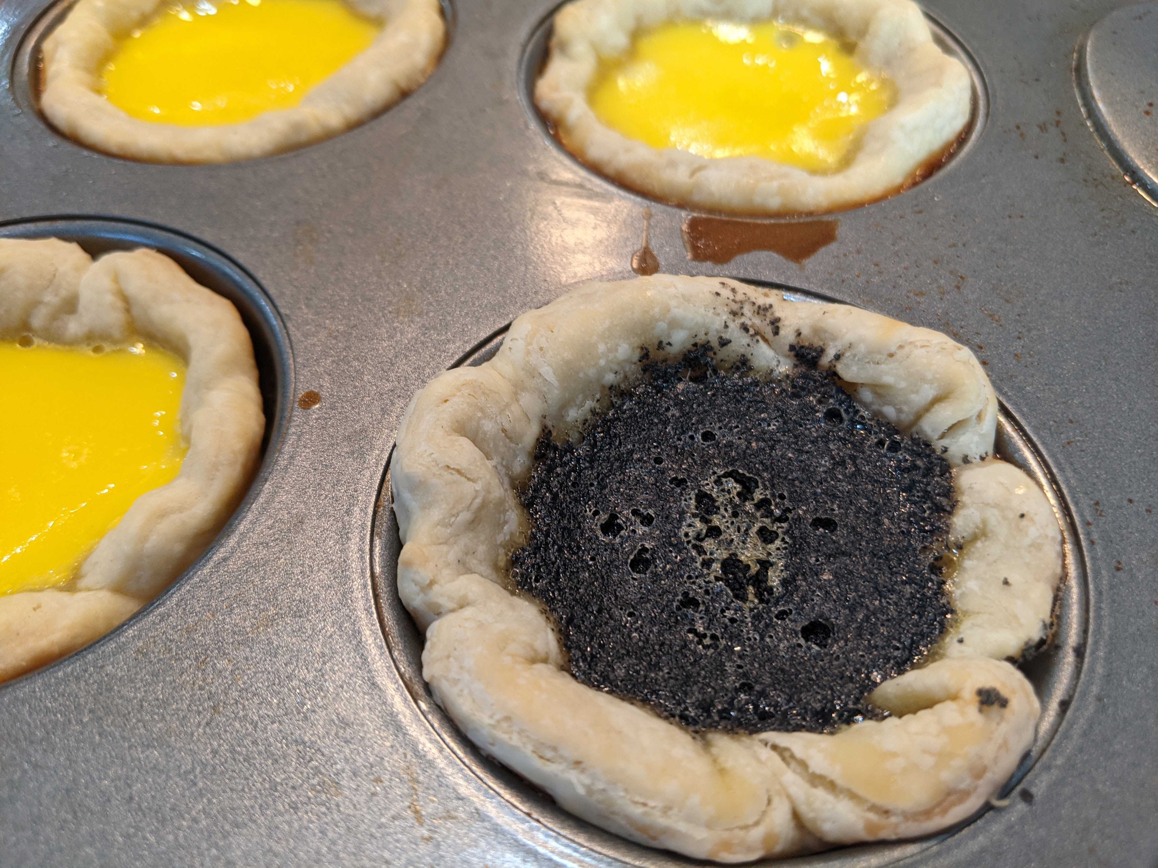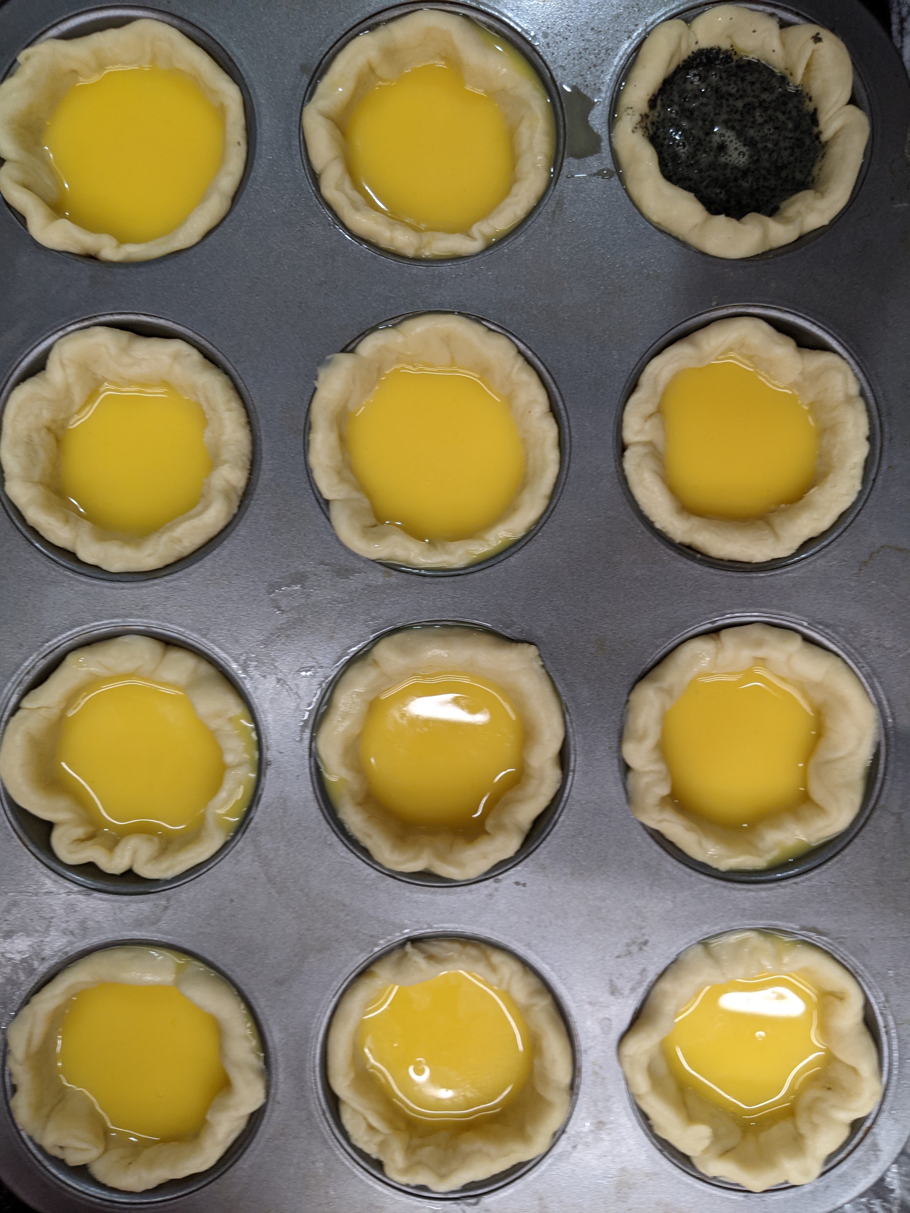 The final results were a hit with the family. The black sesame added a nice dimension to the egg tart, though before trying it again I might have to think about a way to keep it from separating. Not that I minded it, as the layering is actually pretty cool, but I think it might provide a more fulsome black sesame flavour profile. The egg tarts were quickly gobbled by the family, and I was able to indulge without any worry of my allergies. It was glorious and definitely will be giving this a go another time!