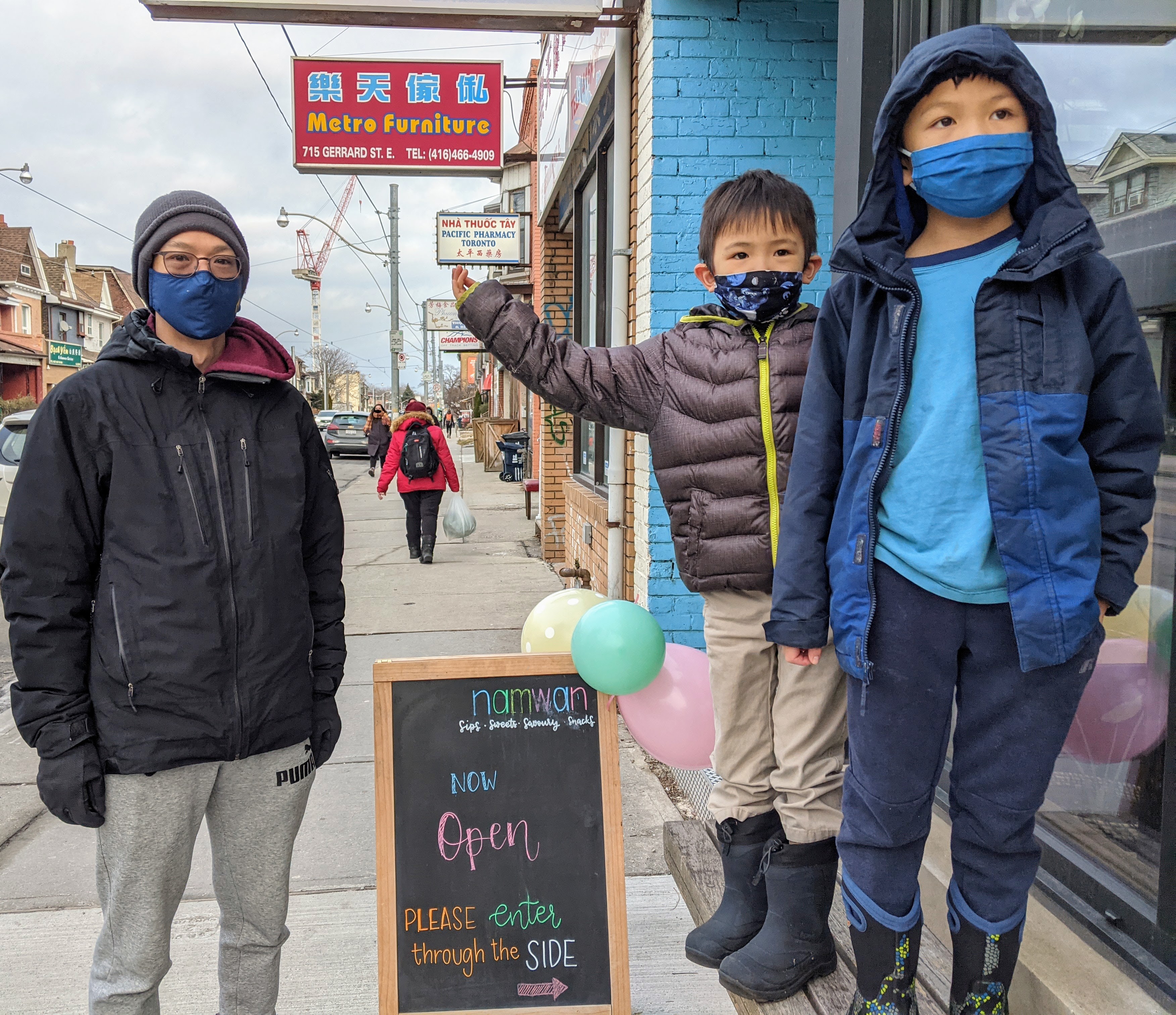 They tell us that the most popular things are the bagged teas, and their purple yam puffs. The bagged teas are totally reminiscent of thai iced teas that are served on the side of the road in Thailand in flimsy plastic bags with straws, only here the bags are a thick standup pouch and the straws are big bubble tea sized. Makes us think back on our trips to Thailand. It would be so fun to take the boys there!